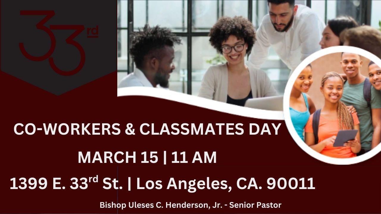 Classmate & Co-Workers Day is scheduled for Sunday, March 15 at 11:00 AM. Start planning now on inviting those who will join us for service. Stay tuned for further details.