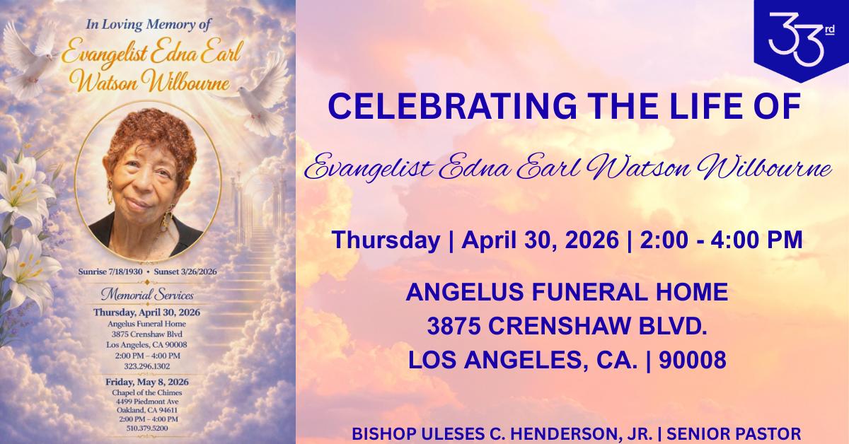 Celebration of Life services for Evangelist Edna Earl Watson Wilbourne will be held as follows: