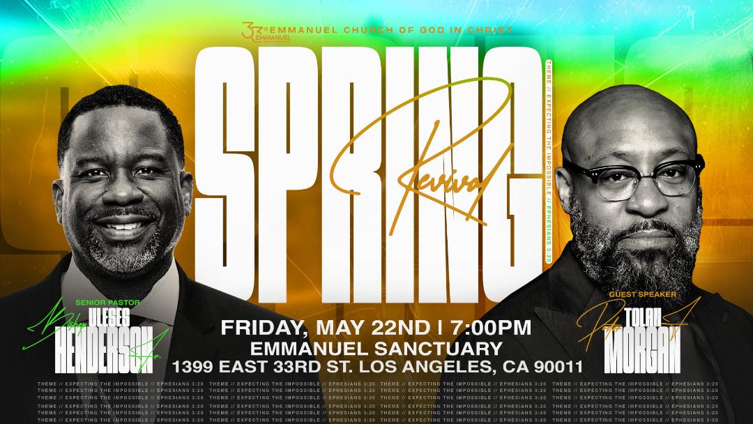Spring Revival is here! Come join us for a powerful time of praise, worship, and renewal. You don’t want to miss what God is about to do!